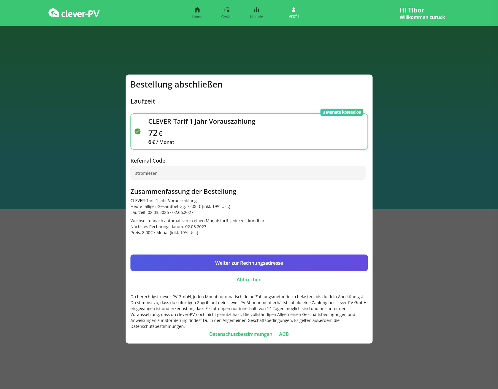 Schritt 6: clever-PV Nutzungsbedingungen akzeptieren