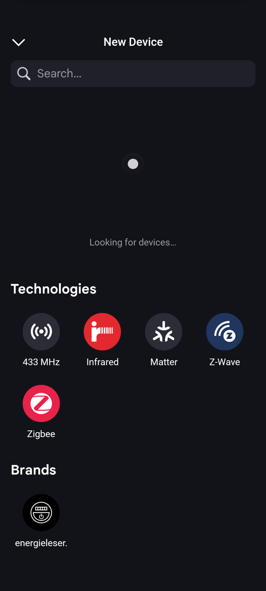 - The New Device screen opens — Homey automatically scans for nearby devices.